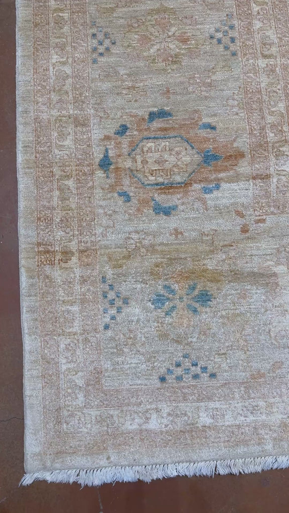 The Ziegler & Co Sultanabad rug is a grand-scale interpretation of the iconic Persian Sultanabad tradition, celebrated for its spacious drawing and refined coloration. Handwoven with exceptional craftsmanship, this piece features a luminous ivory-beige field accented with delicate mineral blues, soft golds, and muted terracotta undertones. The open composition and subtle medallion elements reflect the classical 19th-century aesthetic that made Sultanabad carpets highly sought after in Western estates.